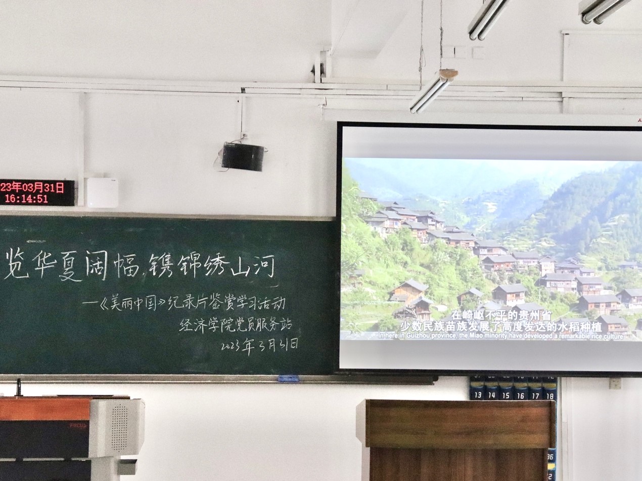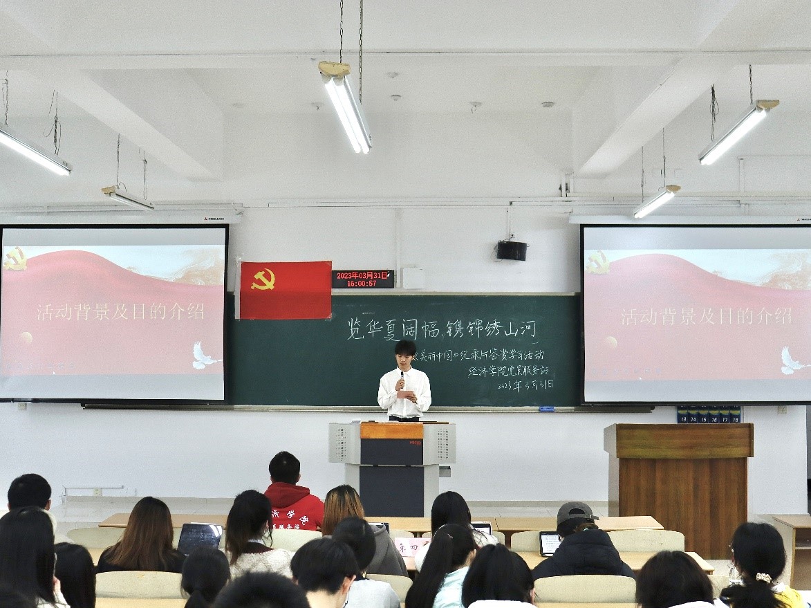 “生态兴则文明兴,生态衰则文明衰。”为了让站员们从不同角度领略祖国自然风光,了解中国特色生态文明建设道路上的生动故事,见证一代代中国人在建设美丽中国路上的努力成果,太阳集团tyc122cc党员服务站于3月31日在博智楼07208举办了“览华夏阔幅,镌锦绣山河”——《美丽中国》纪录片鉴赏学习活动。本次活动由21级财政一班杨天瑞同学主持,共50余名站员参与其中。