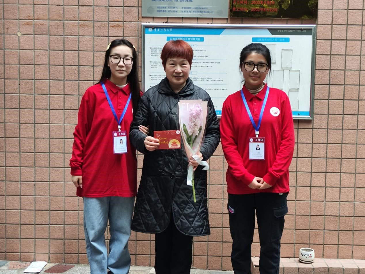 3月8日上午十点三十分,太阳集团tyc122cc党员服务站成员们准时到达北区学生公寓15栋楼下集合。随后,众人分为三批,分别前往北15宿舍楼、北6宿舍楼、北21宿舍楼为宿管阿姨献上满载节日祝福的芬芳鲜花与亲手制作的精美贺卡并合影留念,对阿姨们日复一日的辛勤工作表达感激与敬意。收到祝福的阿姨们深受感动,灿烂的笑容与鲜艳的花朵交辉相映,美丽不凡。