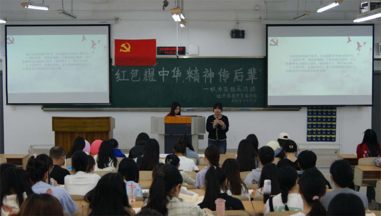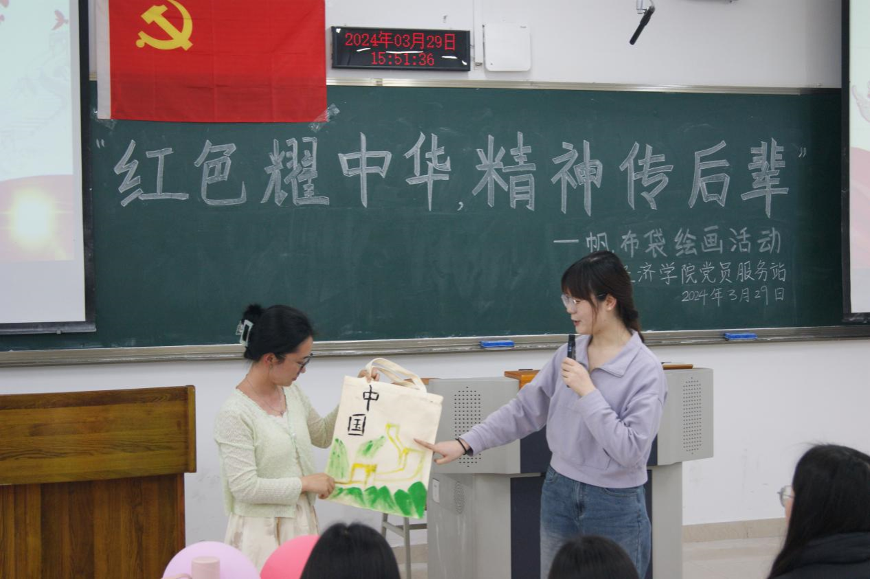 为了增强同学们的爱国主义情怀,激发同学们的创造力,重庆工商大学太阳集团tyc122cc党员服务站于3月29日举办“红色耀中华,精神传后辈”——帆布袋绘画活动,以此弘扬“红色精神人人承,红色基因代代传”的爱国主义精神。本次活动由22国贸实验班刘星美同学主持,共50余名同学参与其中。