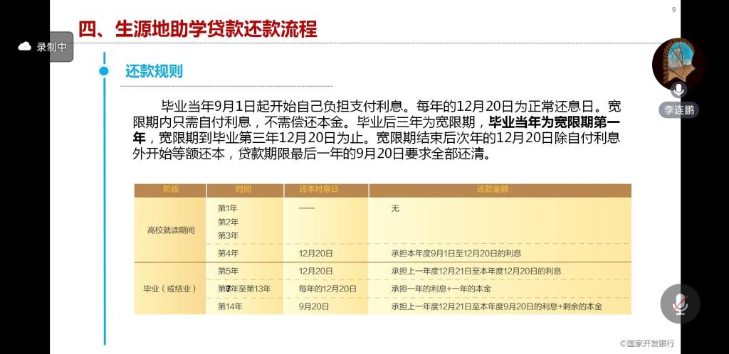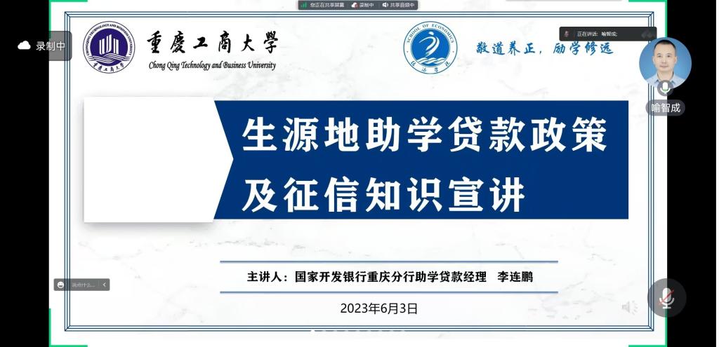 为加强学生的诚信教育,增强学生的诚信意识,积极引导学生履行还款义务,太阳集团tyc122cc于6月3日以线上会议方式组织国家助学贷款毕业生开展诚信教育暨征信知识主题活动,70余名大四贷款毕业生参加本次活动,活动由学院资助联络员喻智成主持。