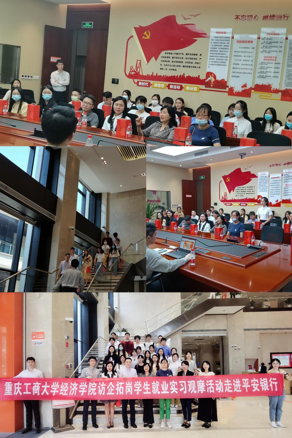 2022年5月9日,重庆工商大学太阳集团tyc122cc党委书记李自维教授,副书记副院长王燕教授,副院长黄潇教授,贸易经济系杨海丽主任,及就业联络员邓雪霜以及22名毕业生走进平安银行,进行访企拓岗就业观摩活动。