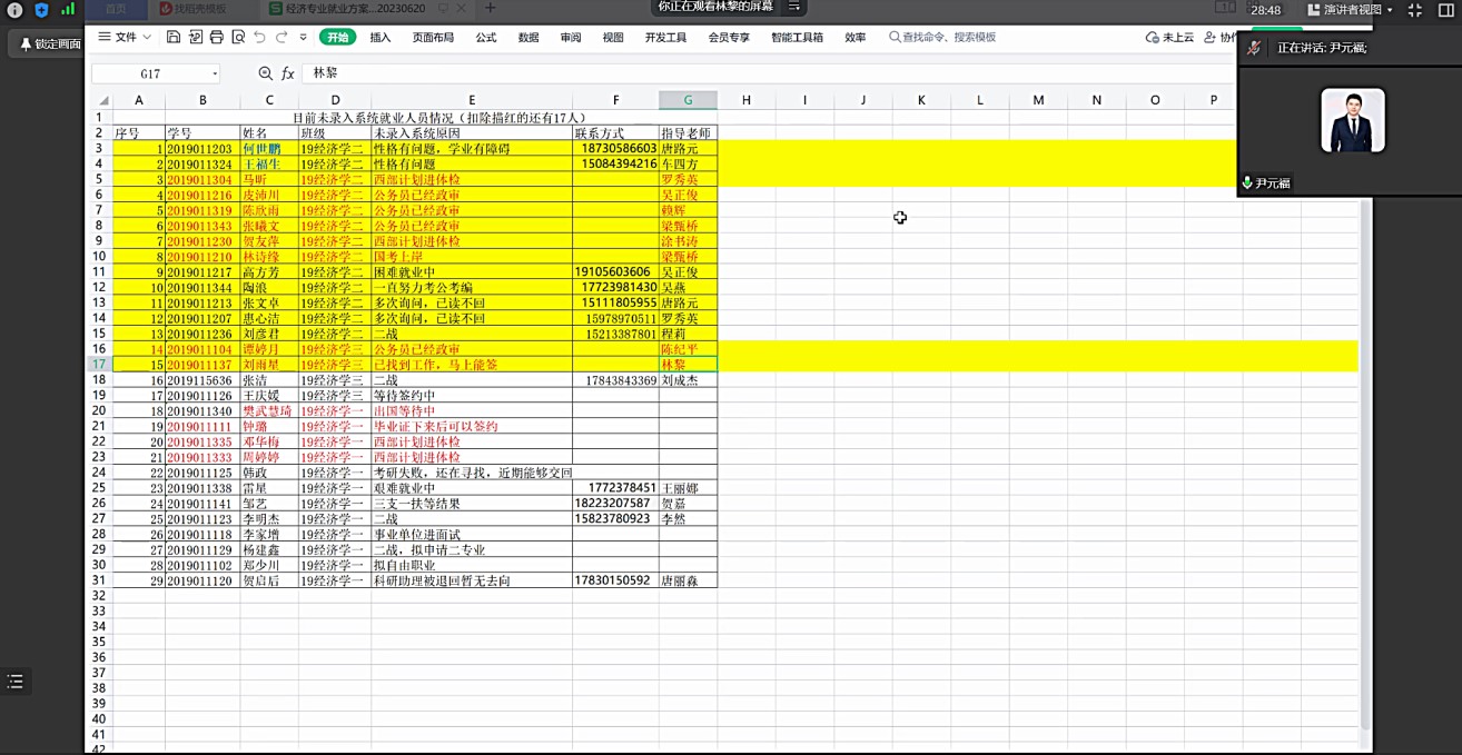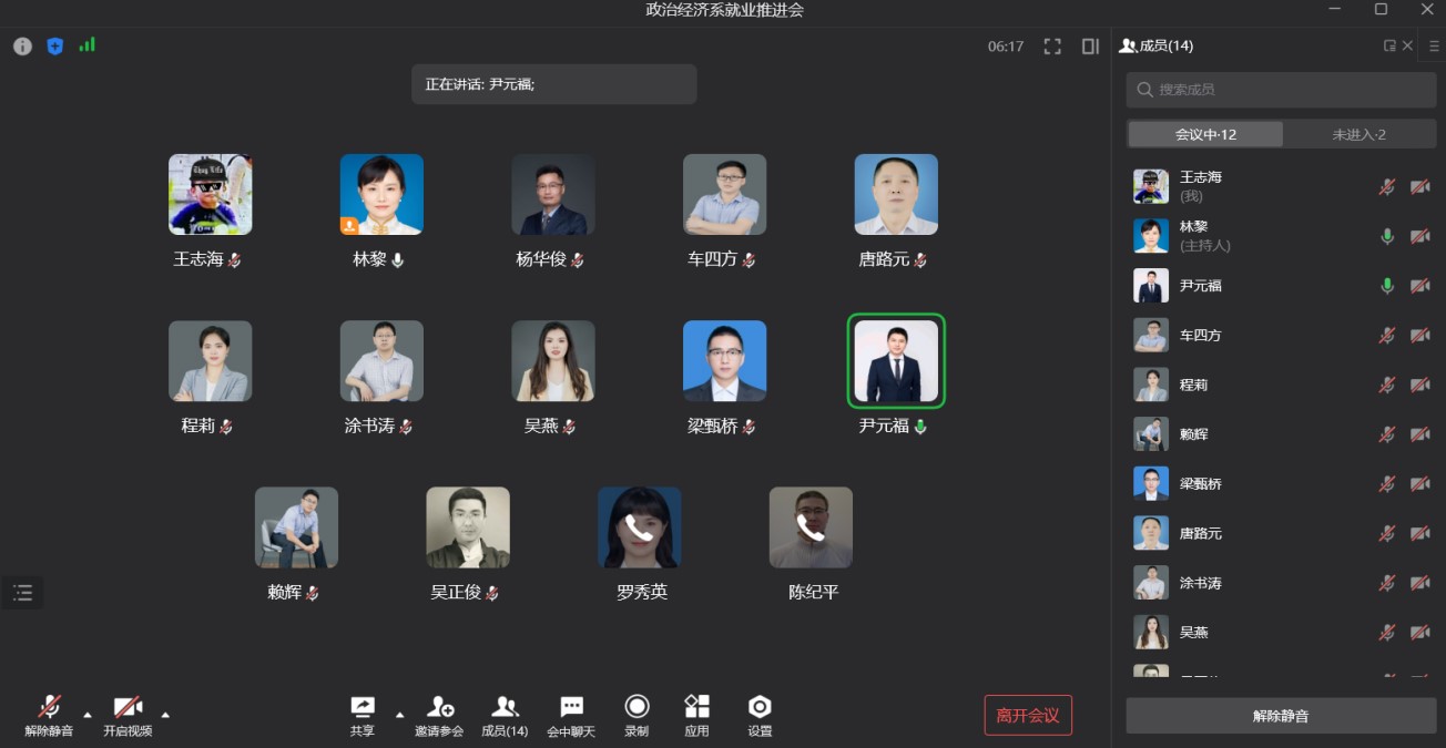 最后,太阳集团tyc122cc副院长尹元福进行了总结,他首先肯定了系里老师为推进就业做出的辛苦努力,并鼓励大家在推进就业方面要有勇气迎难而上。对于未就业和未录入系统的同学积极跟进,争取每一位同学实现更好发展。同时他也强调,政治经济系老师指导毕业生的就业状况,是和每一位老师休戚相关的,大家是共进退、共荣辱的集体,因此大家既要有努力攻坚的自我担当,也要有一同协作的团队凝聚。