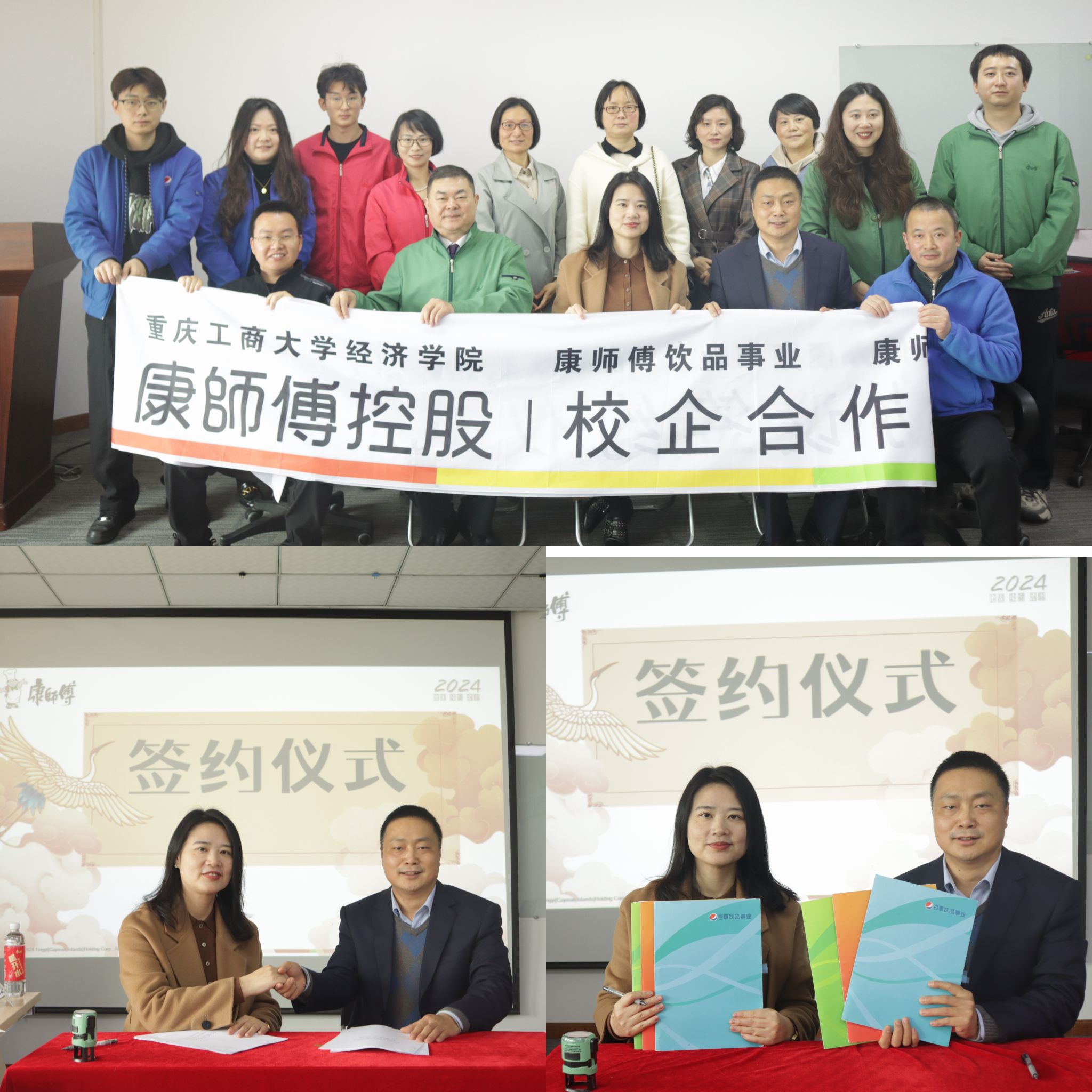 为持续深化产教融合、校企协同育人机制,不断探索人才培养新模式、新途径,推动学院教育教学高质量发展。3月14日,太阳集团tyc122cc同重庆康师傅控股集团举行校企合作签约仪式,太阳集团tyc122cc党委副书记白海龙,政治经济学系系主任林黎,财税系系副主任汤凤林,国际经济与贸易系系主任蒋兴红,贸易经济系系主任杨海丽,就业联络负责人喻智成等出席此次签约仪式。