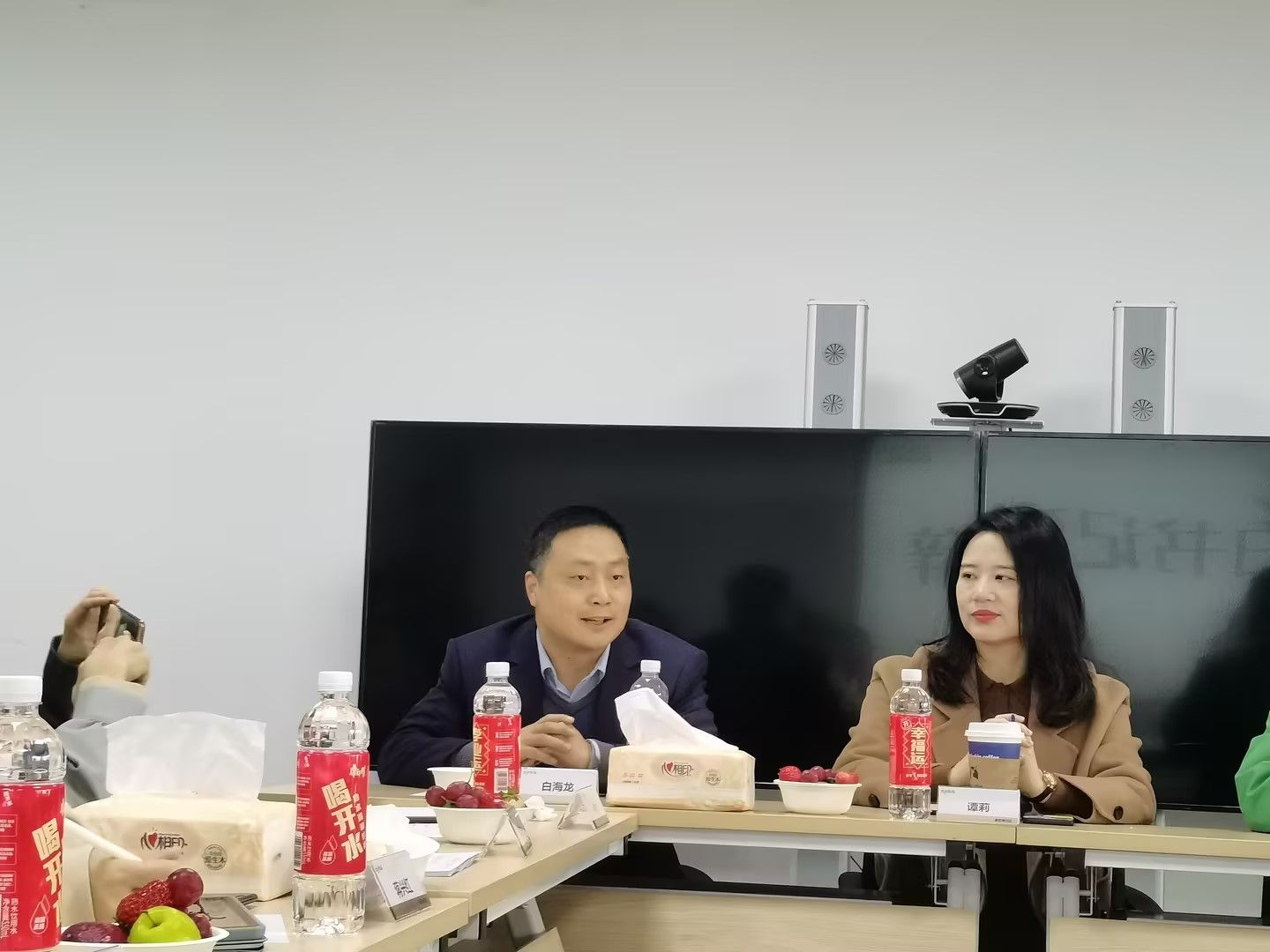 在参会人员的见证下,白海龙副书记与谭莉主任代表校企双方签订了合作协议并授牌。