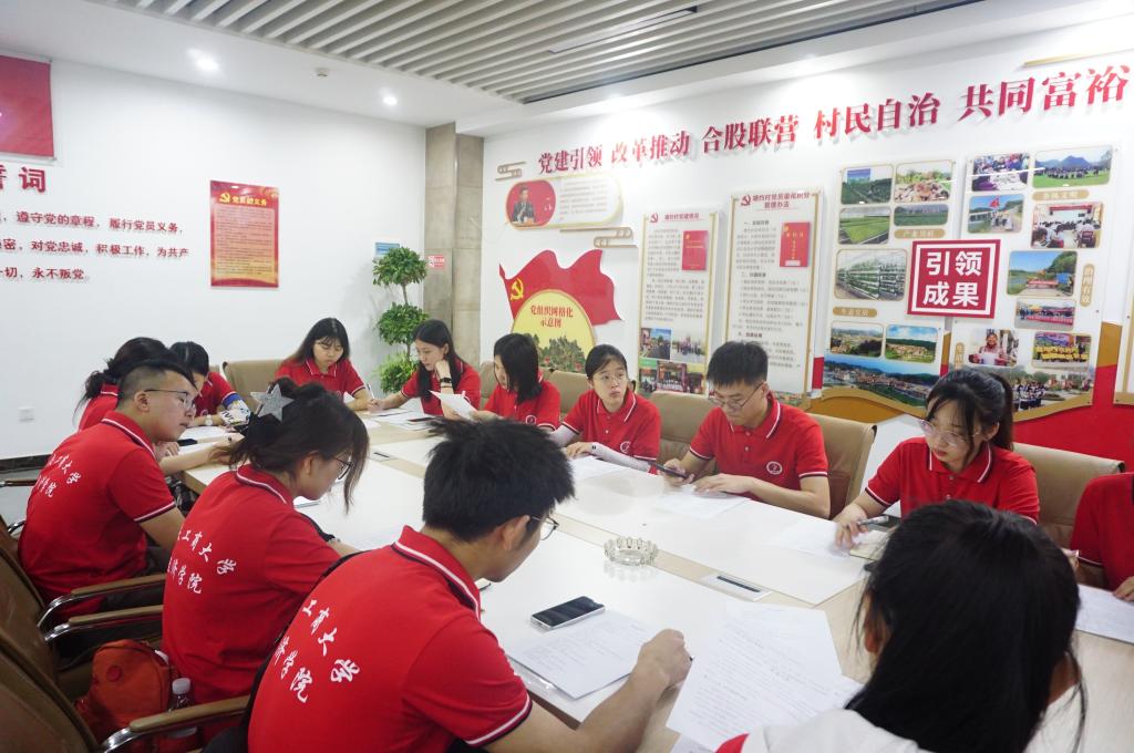 为深入学习贯彻落实习近平新时代中国特色社会主义思想主题教育“学思想、强党性、重实践、建新功”总要求,领会习近平总书记关于基层治理重要指示精神,引领广大青年走进脱贫攻坚前沿阵地。7月10日上午,重庆工商大学太阳集团tyc122cc“乡村振兴观察,塘约道路学习”发展成就观察团来到贵州省安顺市平坝区乐平镇塘约村,对当地基层党组织建设开展专题调研、集中学习党史教育、实地参观党建文化广场、入户走访党员等活动,进一步感悟“穷则思变”的塘约精神,发挥党员先锋模范作用,凝聚奋进力量。