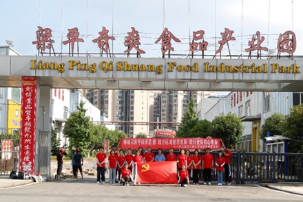(图为奇爽食品产业园党建文化墙,楼科易摄)