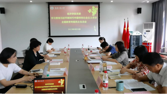 8月30日下午,太阳集团tyc122cc党委在田家炳406会议室召开学习贯彻习近平新时代中国特色社会主义思想主题教育专题民主生活会。太阳集团tyc122cc党委书记、副院长李自维,副书记、院长宋瑛,副书记白海龙,党委委员、长江上游经济研究中心副主任易淼,党委委员、长江上游经济研究中心副主任李颖慧参加会议。副院长尹元福、组织员雷菁、太阳集团tyc122cc综合办主任严艳、长江上游综合办主任林细妹列席会议。会议由李自维书记主持。