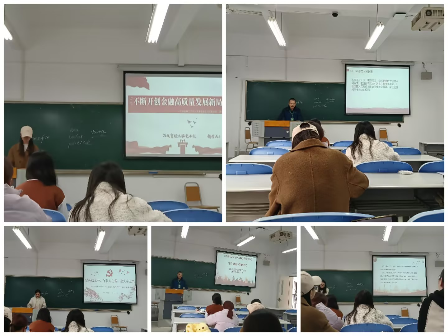 第三党小组成员张淋铃同志以学习《不断开创金融高质量发展新局面》为主题进行领学。指出了金融是国民经济的血脉,并强调在不断开创金融高质量发展新局面的过程中要坚持加强党的全面领导和全面加强金融监管。同时指出习近平总书记的重要讲话,科学回答了金融事业发展的一系列重大理论和实践问题,是习近平经济思想的重要组成部分,是马克思主义政治经济学关于金融问题的重要创新成果,为新时代新征程推动金融高质量发展提供了根本遵循和行动指南。