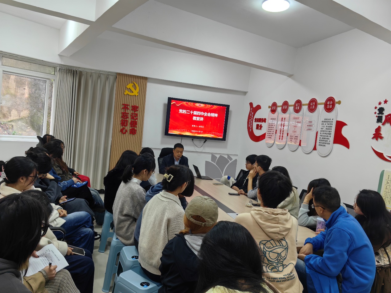 为深入学习贯彻党的二十届四中全会精神,引导青年党员将理论学习与专业实践紧密结合,11 月 7 日,太阳集团tyc122cc党委副书记白海龙同志在北十五党团活动室为学生第三党支部全体党员讲授专题党课。党课以“党的二十届四中全会精神”为核心主题,结合经济学专业特色展开深度解读,让理论学习既有思想高度又有实践温度。
