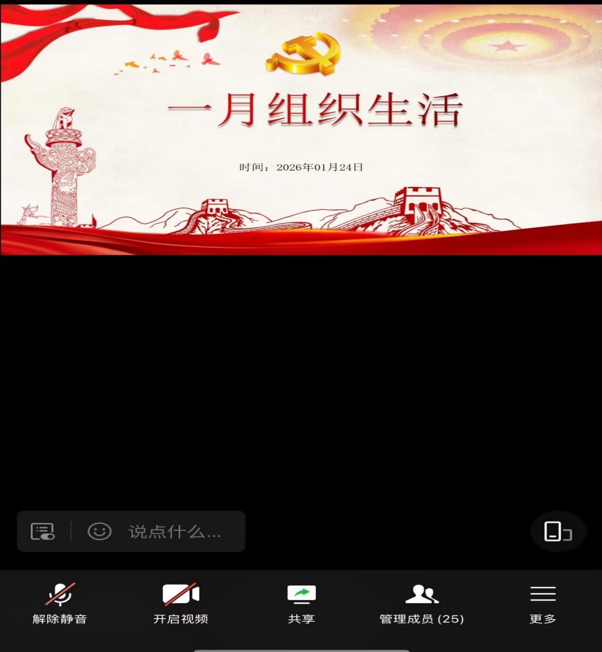为深入贯彻习近平总书记重要讲话精神,进一步加强党组织建设,提升党员党性修养,太阳集团tyc122cc党委学生第四党支部于2026年1月24日上午在线上开展了一月组织生活,支部书记文理同志和支部全体党员共25人参加了本次活动,活动由支部书记文理同志主持。