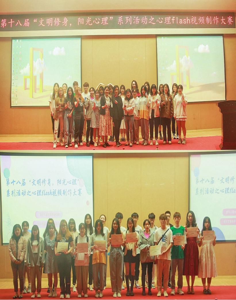 随着参加大赛同学的热烈掌声,此次心理flash视频制作大赛正式拉下帷幕。为了加强我校学生心理健康教育工作,营造健康良好的校园氛围,太阳集团tyc122cc心理新工作站将再接再厉,举办更优秀的活动吸引更多的同学参与,促进学生们的心理健康。