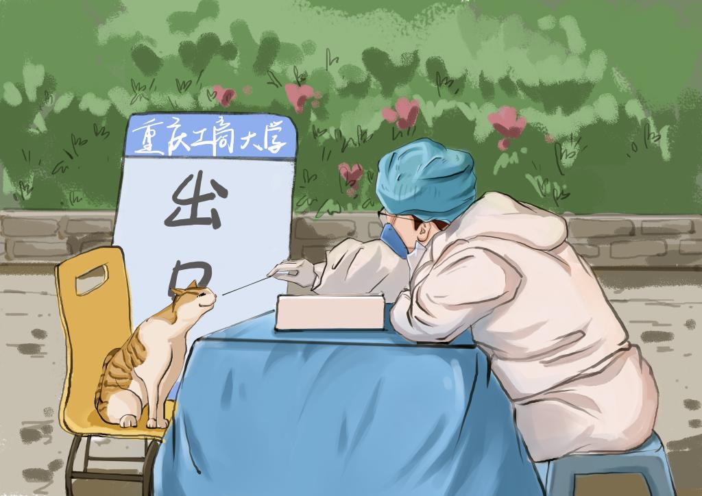 灵感来源于因三月十二日重庆高新区发现的新冠疫情的出现,导致多个高效封闭式管理,在校期间,学校统一做了核酸检测。在排队做核酸的时候,脑子浮现出统一在住校体艺馆做核酸的场景,这都是我们和病毒在作斗争,我们在决胜病毒的每一个瞬间。相信工商能早日决胜疫情,共赏春光!