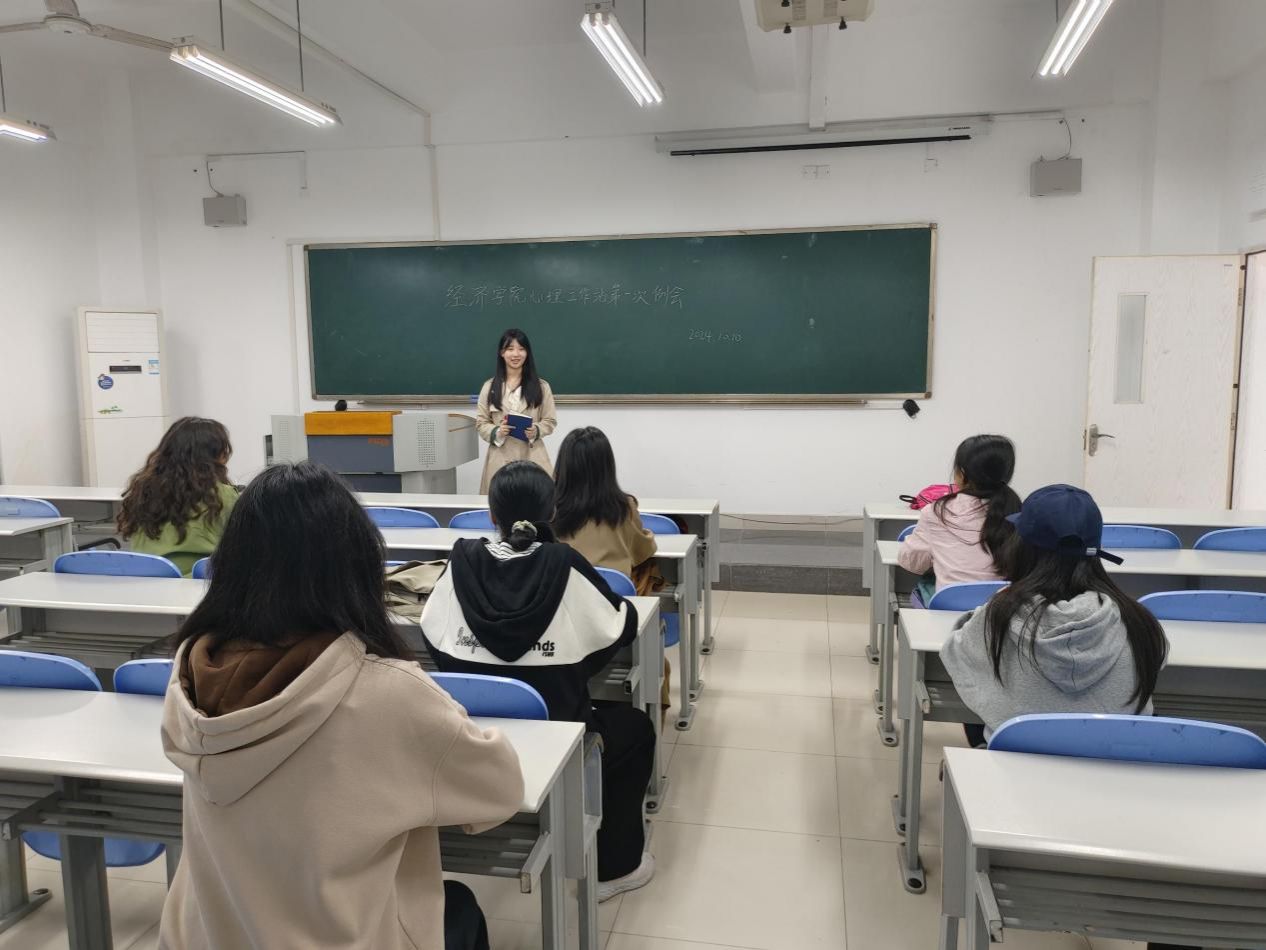 会议首先,站长陈妍希、副站长杨双对各位新成员的加入表示欢迎,同时介绍了心理工作站的成立背景、学院心理工作站自成立以来开展的活动情况和各部门的主要职责。站长陈妍希指出,心理健康教育在学生成长发展中的重要性,要求工作站成员们本着为学院同学们服务的原则,加强自我能力提升和工作业务技能的掌握,引导各班级心理委员们更深入地了解班级同学们的心理状况、积极开展一系列普及心理健康知识的活动,提高同学们对心理学知识的兴趣和认识。最后,副站长杨双对即将在本学期举行的一些重要活动进行了简要介绍,希望成员们多提供创新活动的“金点子”,部门之间加强合作。心理工作站成员们针对十月开展的活动计划进行了充分讨论、合理分工。