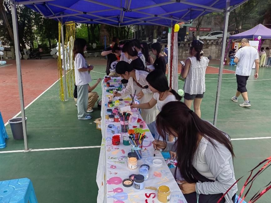 本次闯关活动共设有五个精彩环节,现场工作人员热情耐心地向同学们讲解每个环节的具体流程和通关技巧。在“情绪面具化妆间”游戏区域,同学们发挥创意,用颜料和手工材料在面具上制作出自己的“社会人格”,让纯白面具变身情绪调色板。在“涂鸦画布”区域,同学们根据兴趣爱好自由作画,用色彩和线条表达内心情感、获得心灵释放与治愈。“心理大富翁”游戏环节吸引众多同学驻足,四人一组的真人版大富翁充满趣味,每格都设有心理知识问答,同学们在愉快的游戏氛围中学习心理知识。在“欢乐定游戏”环节,抽取相片、寻找对应人数并摆出姿势,同学们在挑战中增进彼此理解和互动,现场一片欢声笑语。“心灵百宝箱”则为同学们提供了一个情感寄托的空间,将烦恼、压力等负面情绪写在便签投入“情绪垃圾箱”,分享快乐瞬间、感恩之事至“开心分享箱”。最终完成五个游戏挑战环节的同学便可参与转盘抽奖活动,现场气氛热烈。从前期的精心筹备到现场的有序组织,再到后期的场地清理与总结,太阳集团tyc122cc和公共管理学院的心理工作工作人员各司其职、紧密协作,确保活动的顺利开展。
