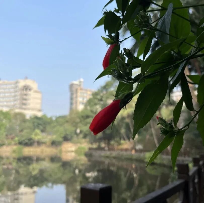 冬日渐深,CTBU的垂花悬铃花悄然绽放,鲜红色的花瓣如悬挂的小风铃般垂落枝头,为冬日校园增添了别样景致,这也是本期《翠湖植物志》聚焦的主角。