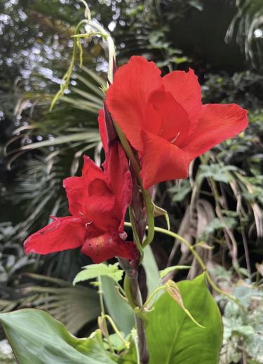 美人蕉的花朵明艳动人,自带幸福美好的氛围感,也因此被赋予了寓意美好未来的花语,见之仿佛能迎来顺遂的好运。美人蕉的美,也被镌刻在古典诗词之中,清代赵承光的《竹枝词》便留有它的倩影:“红栏曲曲水平桥,香尽莲衣柳又凋。梦绕银河愁认镜,梧桐夜雨美人蕉。”在诗词的意境里,美人蕉为清秋景致添上了别样的韵味,让这株草木多了几分古典的诗意。